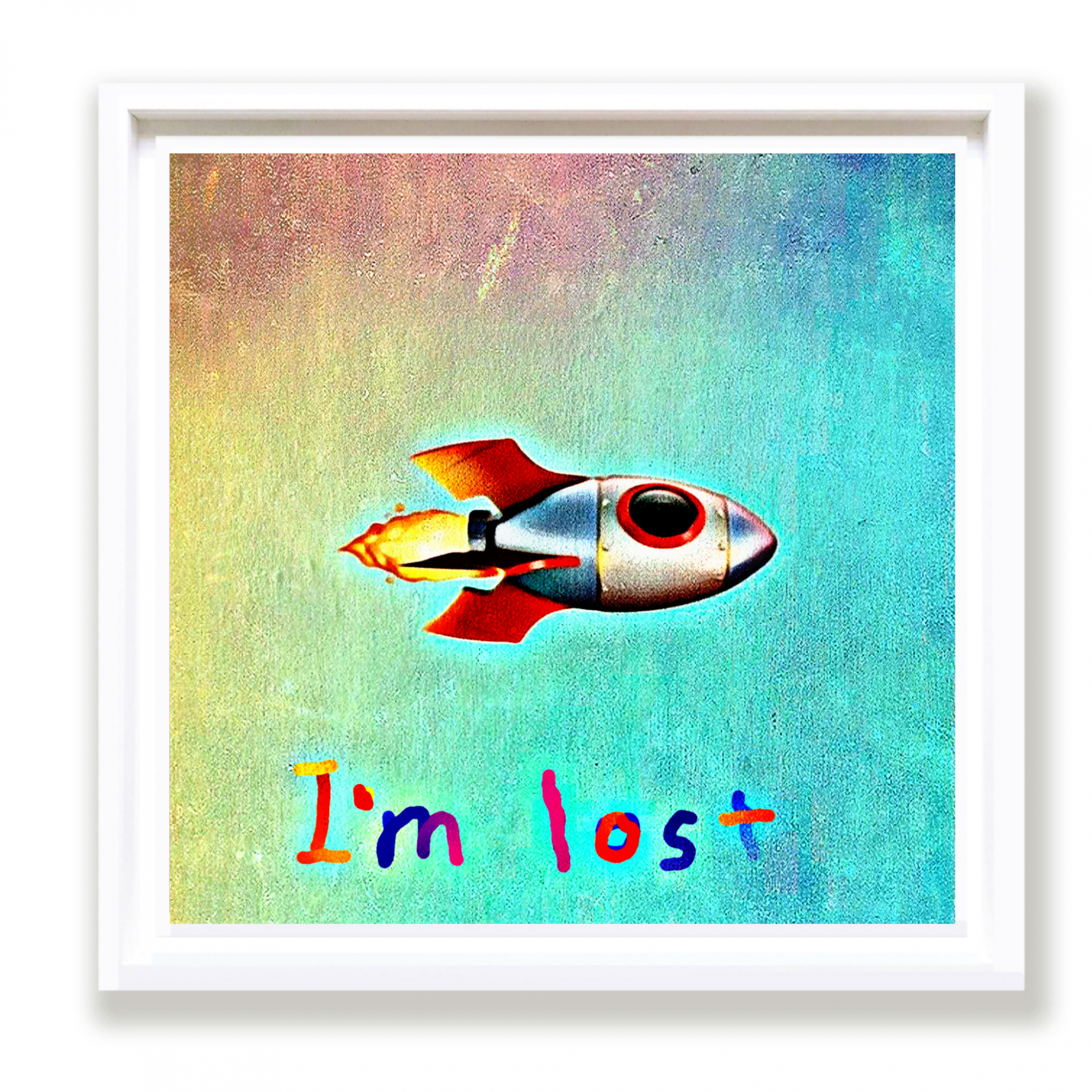 Rainbow words light up the sky alongside detailed emoji-like images accompanying them. These works express a child-like love of life that all of us can do with remembering sometimes.