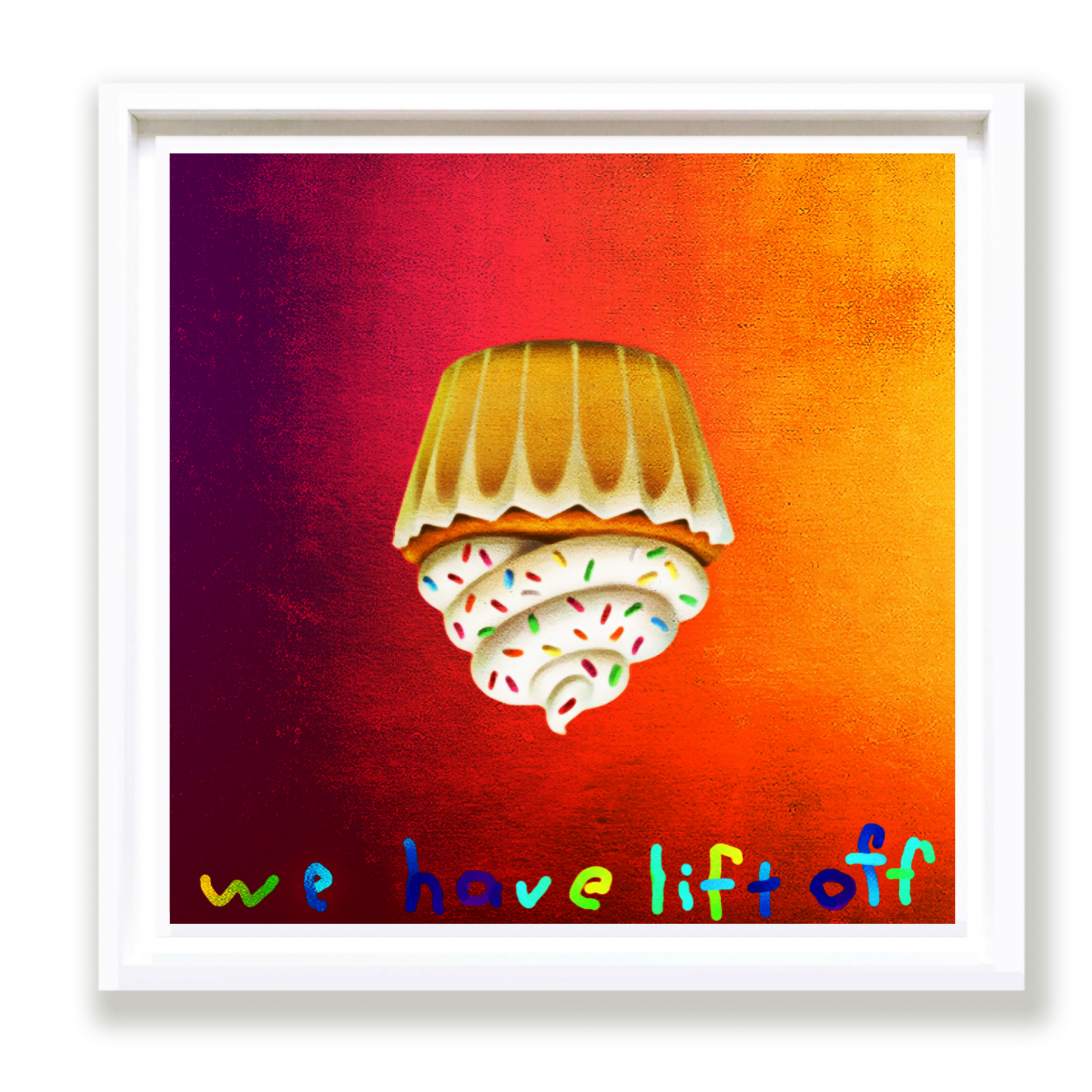 Rainbow words light up the sky alongside detailed emoji-like images accompanying them. These works express a child-like love of life that all of us can do with remembering sometimes.